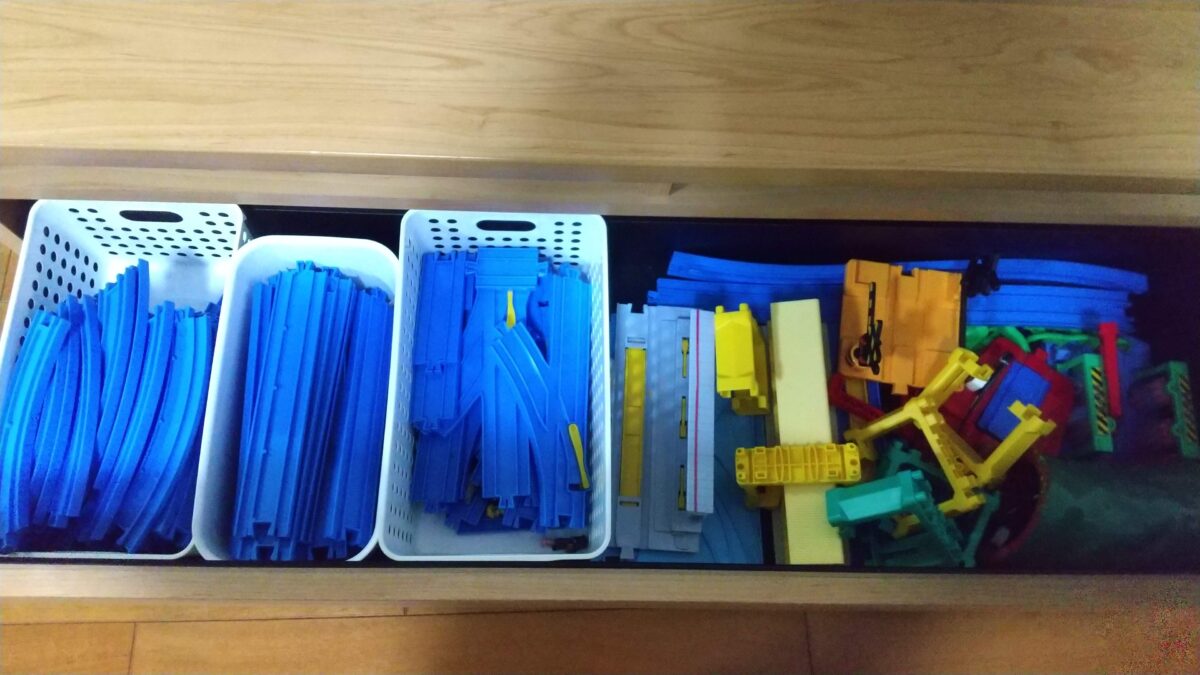 おもちゃや文房具、作品などをいったん全部出すことで、量の把握と