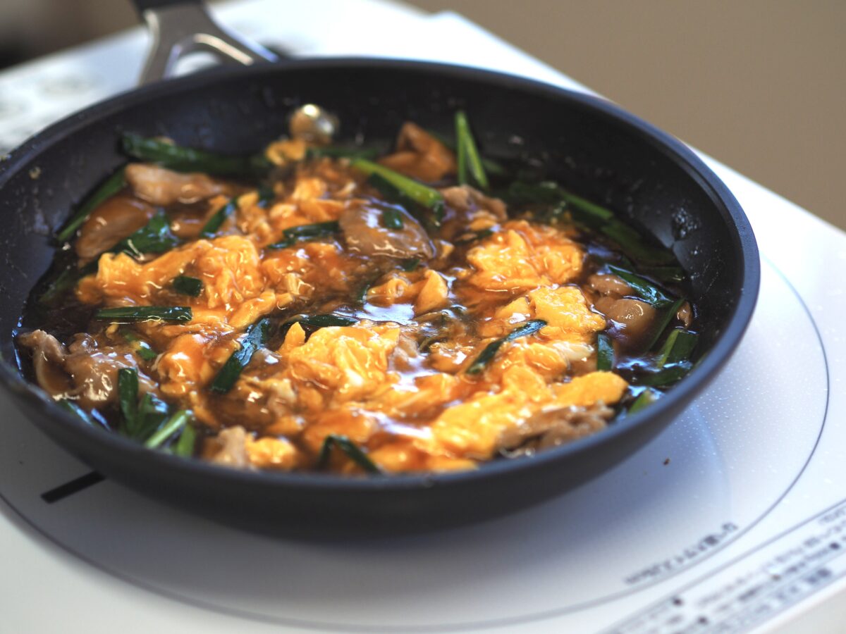 ③ にらとAを加えて混ぜ合わせ、とろみがつくまで1分程度炒める。