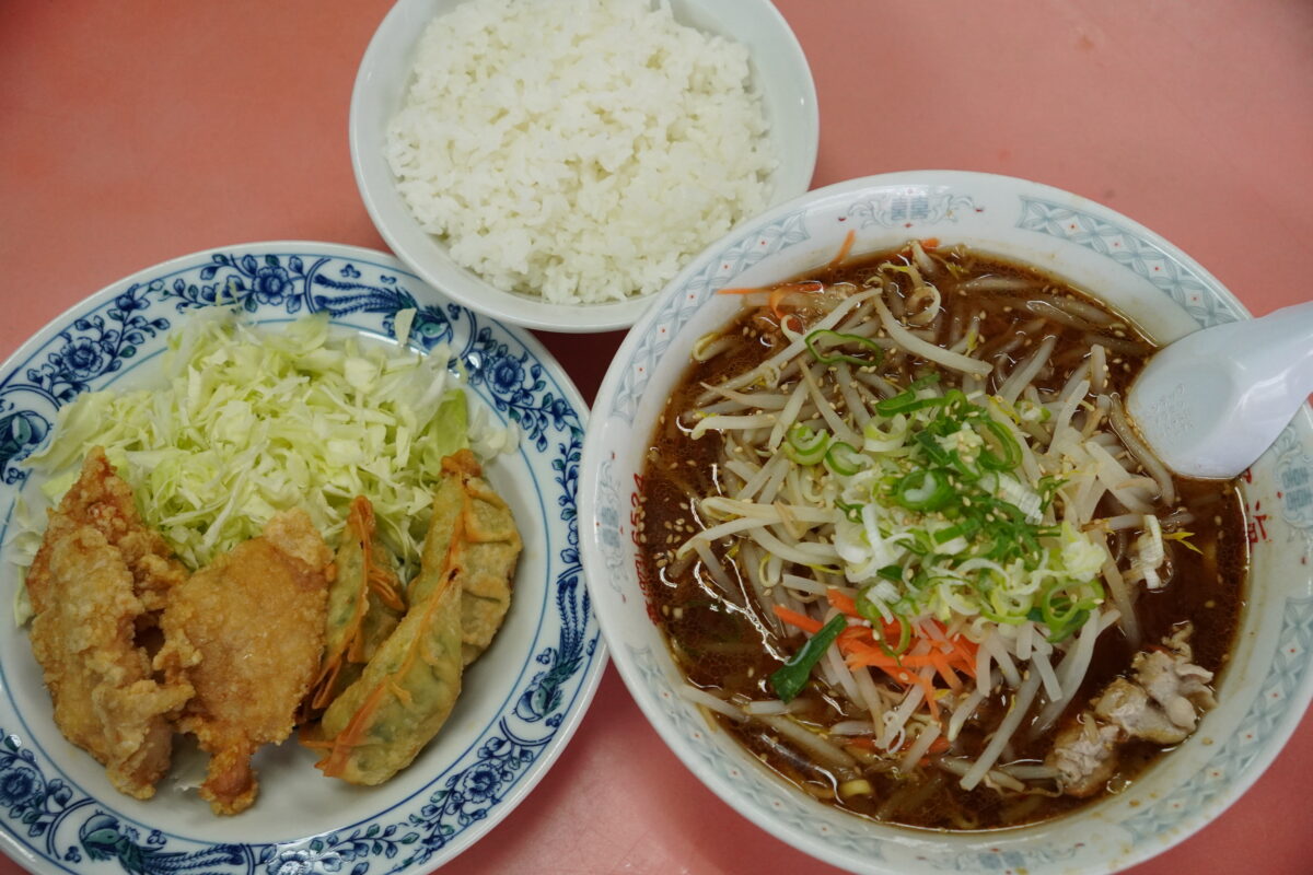 「山が燃えるセット」はラーメン・揚げ餃子3ヶ・から揚げ3ヶ・ライスがセットになったボリューム満点なセット!ラーメンは醤油・しお・味噌から選べます。