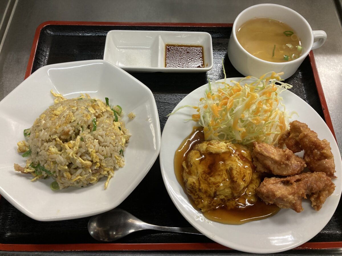 自慢の炒飯と鶏のから揚げ(3ヶ)、ミニかに玉がセットになったお得な炒飯セットです。ぜひご賞味ください!